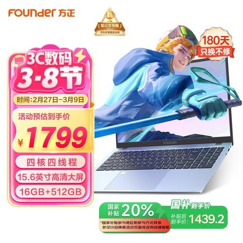 方正Founder2024N100商务办公本,一款专为高效办公与学习设计的轻薄笔记本电脑。搭载15.6英寸大屏幕,配备16G运行内存和512G超大存储空间,性能强劲,轻松应对多种任务需求。无论是网课学习还是日常办公,都能带来流畅便捷的使用体验。目前京东正在进行优惠活动,原价1799元的方正笔记本,参与国家补贴一件八折后,到手价低至1432.1元,是近期非常划算的好价,不容错过!